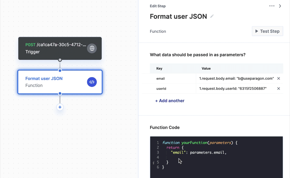 Paragon’s Functions are built-in cloud functions that provide a powerful way to add custom logic to your workflows. You can use functions to transform or compute data, or even to perform more complex operations within workflows that you might otherwise need to write server-side code for. Paragon functions support Javascript (ES7) and provide access to select npm modules.JavaScript Libraries